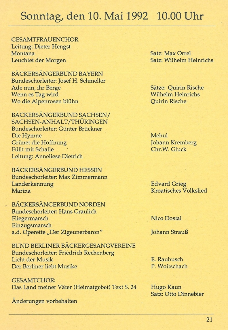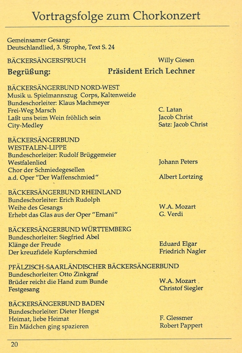 Auszüge aus dem Programmheft zum 15. Deutschen Bäckersängertag:
