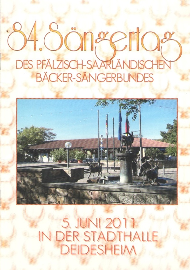 Am 5. Juni 2011 veranstaltete der Pfälzisch-Saarländische Bäcker-Sängerbund seinen 84. Sängertag in der Stathalle in Deidesheim. Es beteiligten sich sechs Bäckerchöre: die Gesangsabteilungen aus Bad Dürkheim-Grünstadt, Frankenthal, Kaiserslautern, Landau, Ludwigshafen und Speyer.